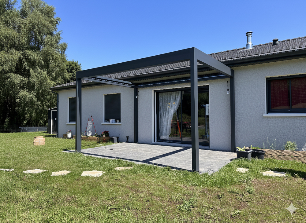 Adossée à la maison, elle prolonge votre espace de vie à l'extérieur, créant une terrasse ombragée et chaleureuse.